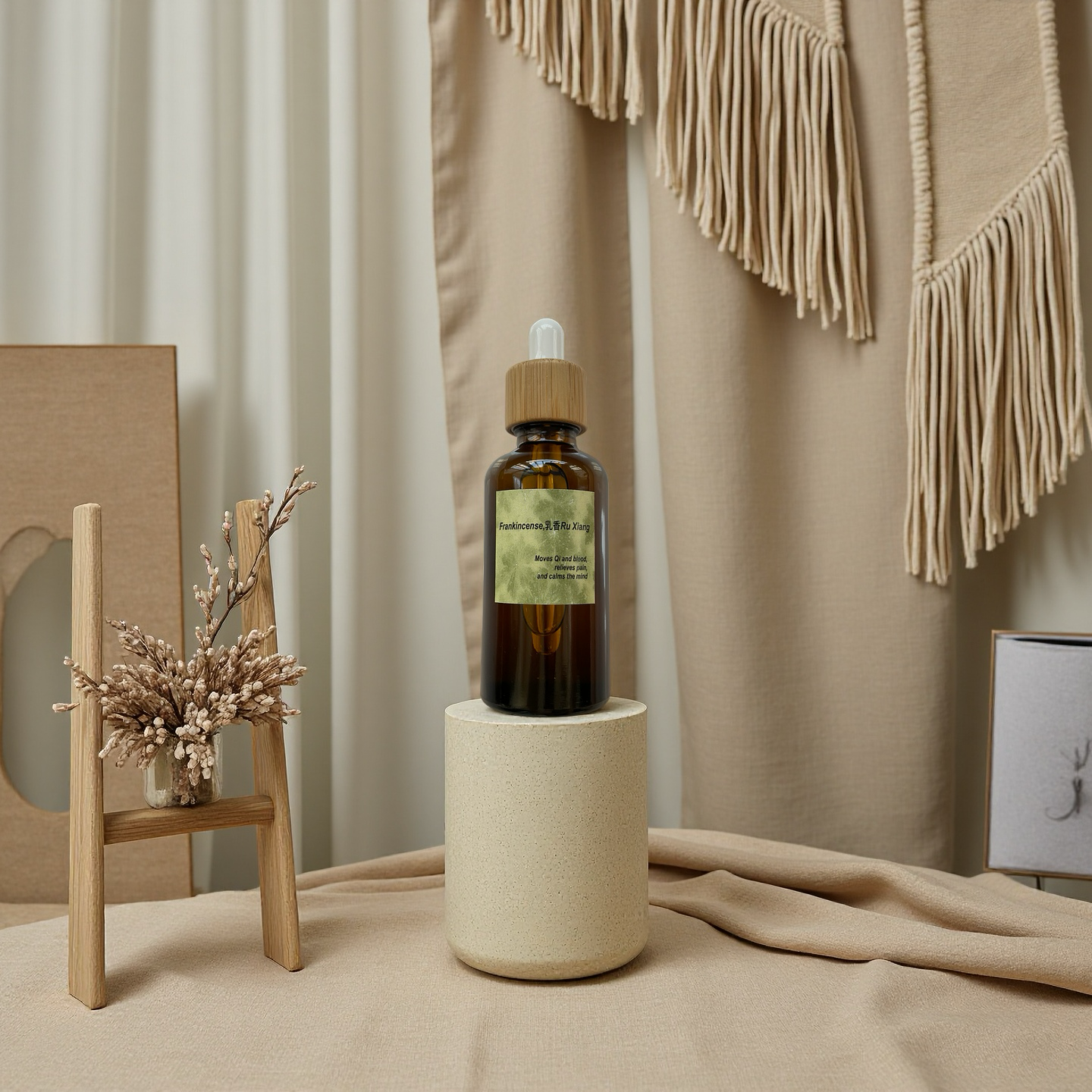In TCM, chronic blood stasis causes leg swelling, pressure, and persistent soreness. Frankincense warms the meridians, promotes Qi and blood circulation, and eases leg muscle pain. Apply several drops to the Chengshan (BL57) acupoint on the calf or Achilles area to relieve leg soreness, improve circulation, and reduce chronic discomfort.